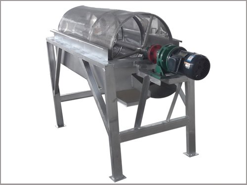 电机驱动滚筒轴线作旋转运动,减速机调节筒体以一定的转速旋转,物料由进料口进入筒体内,在旋转产生的离心力作用下,物料在筒内翻滚,自上而下通过分级筛网析出,由于筛网分级尺寸不同,物料逐渐被分离筛选,粒度合格的物料经筛分后落入到各自的漏斗,然后由人力方式运出或通过输送机自流送往成品站。合格产品经过下端出料口排出,颗粒较大,分选不合格的产品经另一排料口排出,筒内清理装置,使筛网不宜被阻塞。