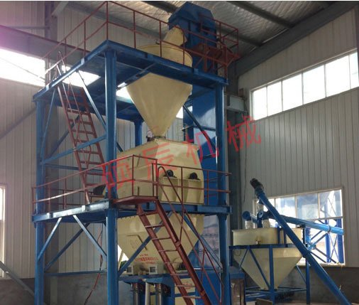 本设备自动化程度高、采用微机配料、形成自动生产线、产量高、故障率低、操作简单、占地面积小(厂房高度不低于9米)、生产效率高,是国内同类产品性价比较高的一款粉料混合生产设备。