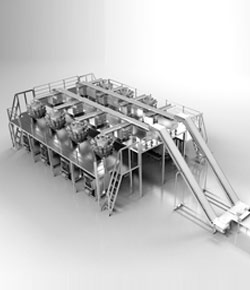 此集中供料方案适用于同类物料量大的包装、整套结合紧凑、占地小。