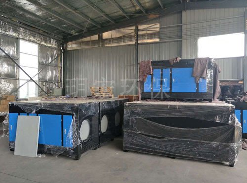 2、废气经过洗涤塔后进入光解式废气处理设备,此设备为目前国内比较先进的异味处理设备,废气净化率达98%以上;