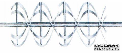 外部的螺条将物料推到一定的位置,两者使物料作辐射状运动。