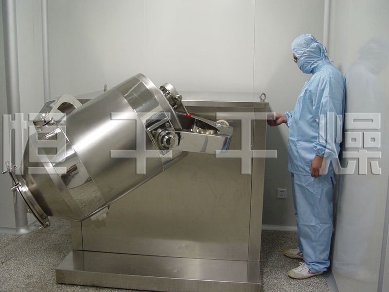 结构:该机由机座、传动系统、电器控制系统、多向运动机构、混合筒等部件组成。与物料直接接触的混合筒采用优质不锈钢材料制造,桶体内外壁均经镜面抛光。