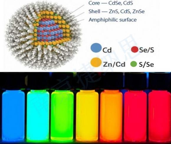 量子点是一种直径在1-10nm之间的纳米颗粒,该纳米颗粒在外界能量的激发下可发出与其自身能级相对应的荧光,是一种高转换效率的发光材料,因其粒径小,从而具有优越独特的光学和表面可修饰性等性质,已成为纳米生物光子学领域的新贵,被广泛应用在生物标记领域。高质量的量子点溶液具备以下特点:广泛的尺寸范围、较窄的尺寸分布、良好的稳定性以及高荧光性。