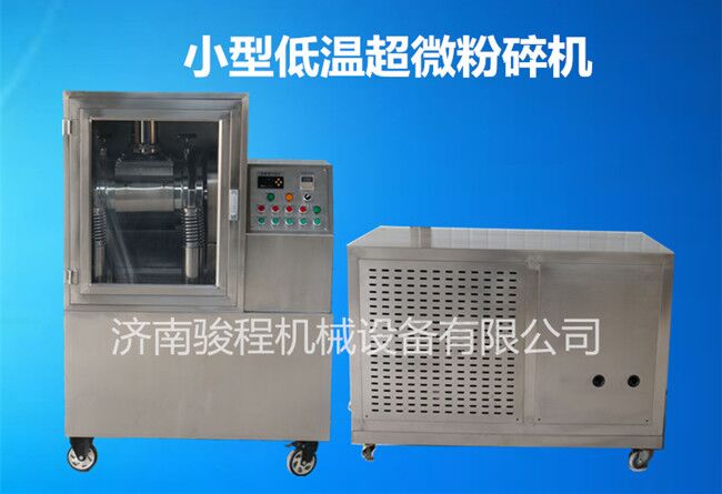 对于纤维状、高韧性、高强度、含油率高、含糖量高的物料采用普通粉碎方法很难达到超微粉碎。 济南骏程低温超微粉碎机在粉碎时可根据要求,通过向磨筒套内通入冷却水或配置制冷机来控制粉碎温度。采用冷冻超微粉碎方法,利用物料在不同温度下具有不同性质的特性,将物料冷冻至脆化点或玻璃体温度之下,使其成为脆性状态,在粉碎原料达到低温、粉碎机内部为低温情况下粉碎,物料与粉碎机内部均呈低温状态。粉碎天然植物在低温下其韧性出现均匀地降低,虽没有明显的脆性转变点,但随着温度降低其脆性增加的规律是存在的,并可找出一个脆性大的低温范围。并且,物料在快速降温情况下,各部位由于不均匀收缩而产生内应力,极易引起薄弱部位破裂和龟裂,导致物料内部组织结合力降低。物料在磨筒内不断被冲撞、挤压、剪切当受到一定的冲击时,极易破碎成细粉,达到超微粉碎的目的。