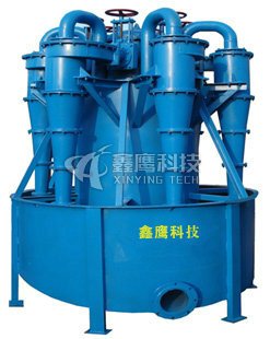 本公司研发的高效水力旋流器,能将分级效率由70%提高到85%,在矿石和脉石密度差较大的磨矿分级作业中,新型高效水力旋流器的分级效率比现有水力旋流器提高20%左右。如在铁矿石的磨矿分级作业中,用新型高效水力旋流器分级即能达到工艺要求,而不需配备高频振动进行二次分级。