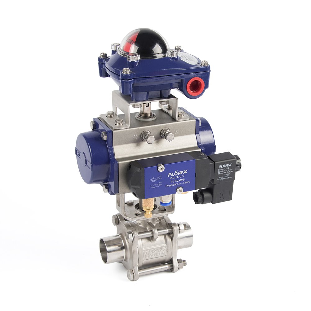 焊接阀门是由三部分阀壳组成,由四只较长螺栓从两端夹住中间阀体与阀球而成。其优点是维修拆卸时不用拆卸管路螺纹,而直接拆卸四只螺栓,阀体中间部分既可取出。工作原理也是通过气动执行器90度的旋转来带动球体的旋转以达到介质的流通与阻断。执行器与阀体的直接连接减少了发生故障的机率。适用于轻工机械体积小空间窄的场合。