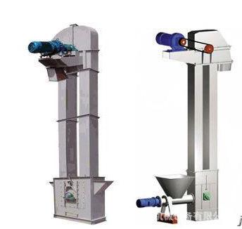 斗式提升机利用一系列固接在牵引链或胶带上的料斗在竖直或接近竖直方向内向上运送散料的机械。