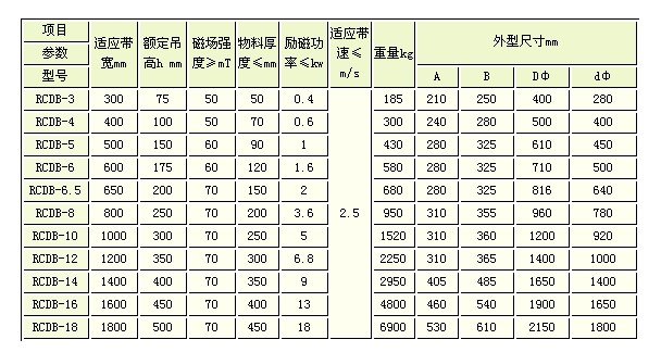 RCDB系列干式电磁除铁器(亦称PDC系列盘式、RCDY系列)是一种用于清除粉状或块状非磁性物料中杂铁的除铁装置。其内部采用电工专用树脂浇注,自冷式全密封结构。具有透磁深度大、吸力强、防尘、防雨、耐腐蚀等特点,在极其恶劣的环境中仍能可靠运行。
