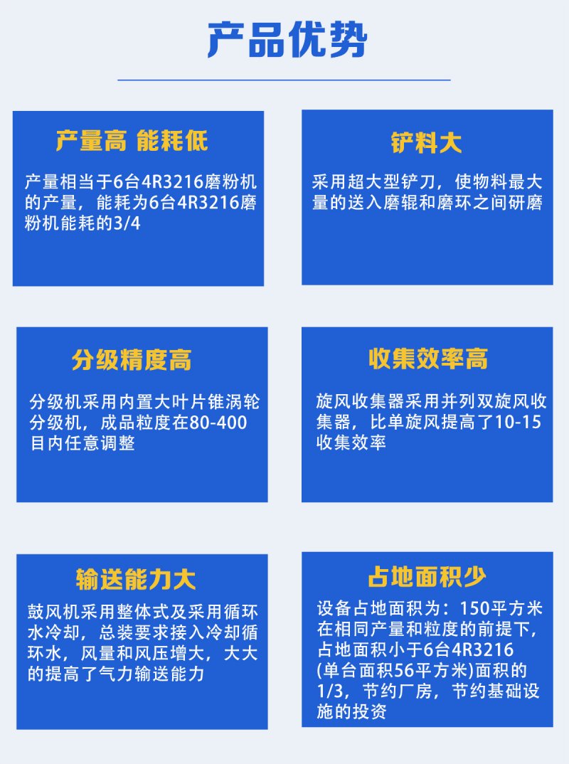 适用于粉磨石灰石,方解石,大理石,滑石,石膏,重晶石,莹石,沸石,锰矿,钛铁矿,磷矿,膨润土,淀粉,高岭土等硬度在莫氏七级以下,湿度在湿度6%以下非易燃、易爆的物料。细度在0.18-0.015(80-800目)之间任意调整。是R型摆式磨粉机的更新换代产品。