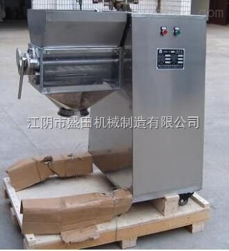 通过机械传动使滚筒往复摆动,将物料从筛网中挤出制成颗粒或粉碎制粒或快速制粒。