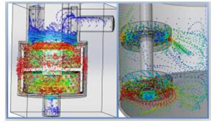 物料先湍流混合,后层流分散,分散后直接排出,不再像分散盘一样对物料进行反复的湍流+层流做功。