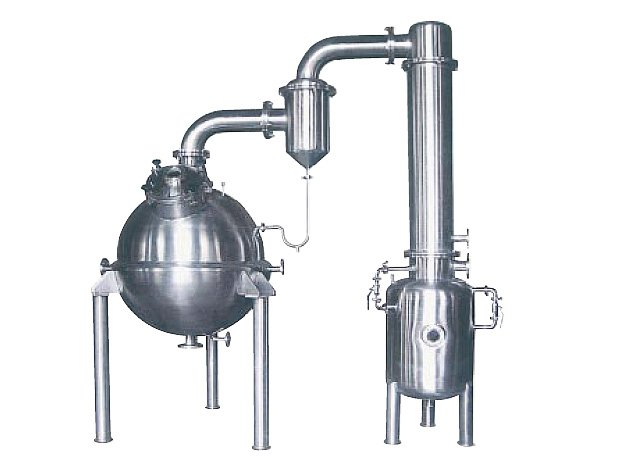 球形浓缩罐主要由浓缩罐主体、汽液分离器、冷凝器、受液桶四个部分组成,可用于制药、食品、化工等行业对液料的浓缩、蒸馏、回收有机溶媒等工艺,由于采用减压浓缩,故而浓缩时间短,对热敏性物料不会破坏其有效成份,本设备与物料接触部分均为OCr18Ni9不锈钢,具有良好的耐腐蚀性能,经久耐用,符合药品卫生要求。