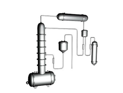 酒精回收塔由塔釜、塔身、冷凝器、冷却器、缓冲器、高位贮罐六个部分组成,可用于制药、食品、化工等行业的稀酒精回收,本设备与物料接触部分均采用Cr18Ni19不锈钢,具有良好的耐腐蚀性能,经久耐用,符合药品卫生要求。