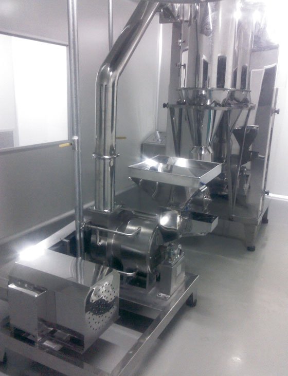 该机组操作简便生产效率高,生产成本低。被广泛使用在制药、食品等领域。该机组不仅可以单机使用,也可以与气流分级机、气流筛等组成闭路循环系统。获得更细的颗粒。