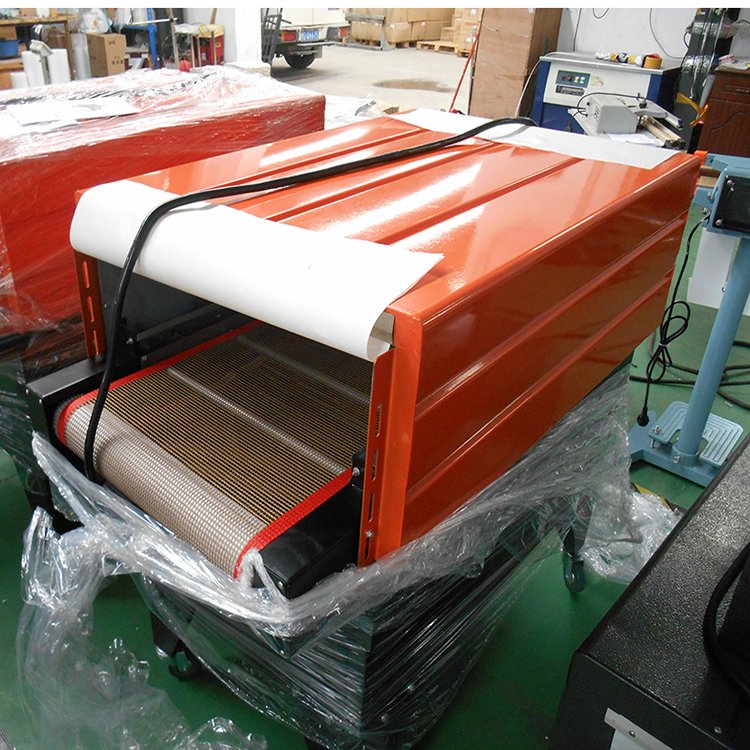 上海阿凡佬特氟龙网收缩包装机机采用下循环式热风结构,炉道高度可自由可调节,炉道宽45厘米,高10到25厘米可调。本机适用于五金配件、玩具、化妆品等物品的包装。两侧百叶风门可调,配置智能温控,交流调速,铁氟笼传送带或滚筒式传送带。