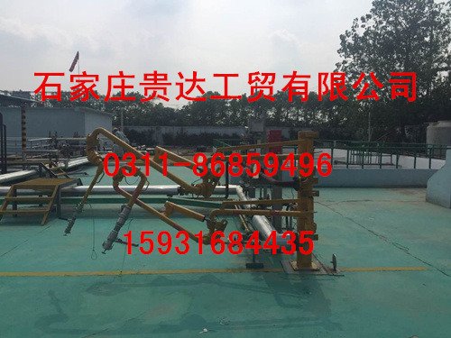 流体装车鹤管是专业的液态气体密闭装卸鹤管,其结构由上下两相装卸管道构成,上部为气相,下部为液相,由五个旋转接头在包络范围内自由动作,实现鹤管接头与罐车接头水平对接。