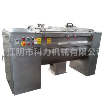 SLD系列卧式螺带混合机由U形筒体、螺带搅拌叶片和传动部件组成;螺带状叶片一般做成双层,工作时外层螺带将物料从两侧向中央汇集,内层螺带将物料从中央向两侧输送,形成了二个循环物流。搅拌部件还可以制作成桨叶式或增加飞刀,适应不同的物料。