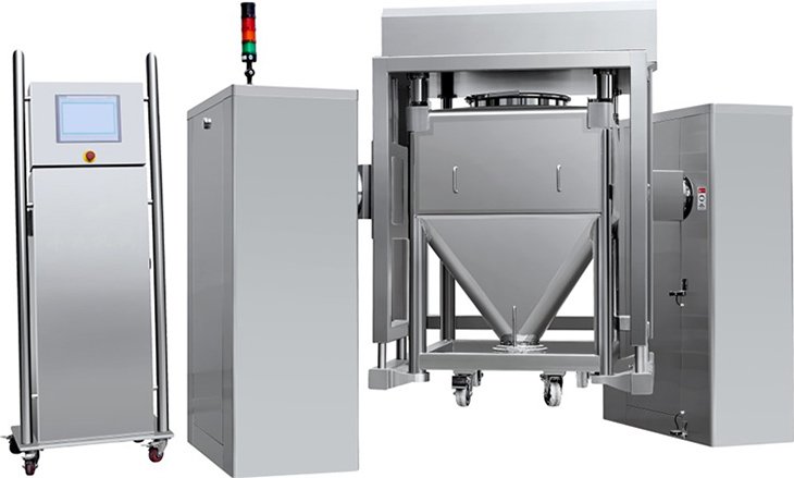 回转体(混合料斗)与回转轴线成30°夹角,混合料斗中的物料随回转体翻动外,同时沿斗壁做切向运动,产生强烈的翻转和高速的切向运动,从而达到**的混合效果,采用PLC全自动控制,并设置红外线安全装置及防误操作装置的出料碟阀,确保生产安全。物料可在同一容器中通过不同的工序段,不需要频繁地转料、加料等程序。有效地控制粉尘与交叉污染,减少物料的损失,控制物料的分层,优化了生产工艺,完全符合药品生产的GMP要求。