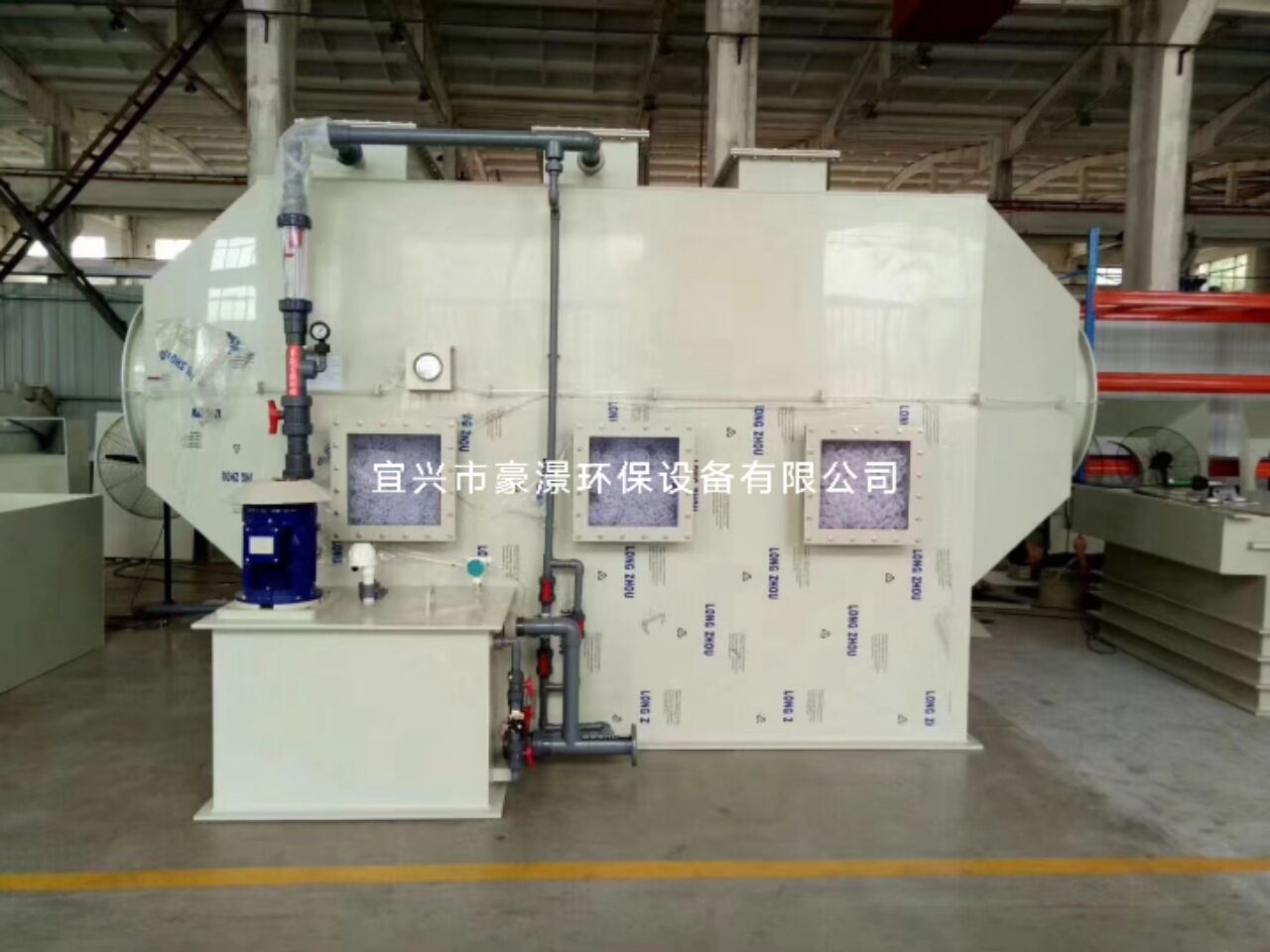 卧式酸雾净化塔与国内外一般酸雾净化塔相比,它具有净化效率高,结构紧凑、外形美观、占地面积小、耐腐蚀抗老化、强度高、重量轻,运输安装方便、易于维护管理等特点,是目前国内外化工、机械、电子、冶金、仪表等行业电镀、酸洗废气处理的**型净化设备。