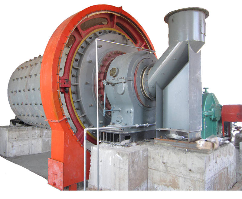 原煤经喂料设备由进料装置进入磨内,热风由进风管进入磨机内,随着磨机筒体的旋转,煤与热风在磨机内进行热交换,煤在磨机内被粉碎和研磨,在煤被研磨的同时,细粉跟随热风一起被抽出磨机。