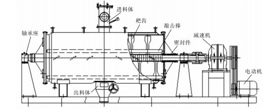 热空气切线进入干燥器底部,在搅拌器带动下形成强有力的旋转风场。膏状物料由螺旋加料器进入干燥器内,在高速旋转搅拌桨的强烈作用下,物料受撞击、磨擦及剪切力的作用下得到分散,块状物料迅速粉碎,与热空气充分接触、受热、干燥。脱水后的干物料随热气流上升,分级环将大颗粒截留,小颗粒从环中心排出干燥器外,由旋风分离器和除尘器回收,未干透或大块物料受离心力作用甩向器壁,重新落到底部被粉碎干燥。