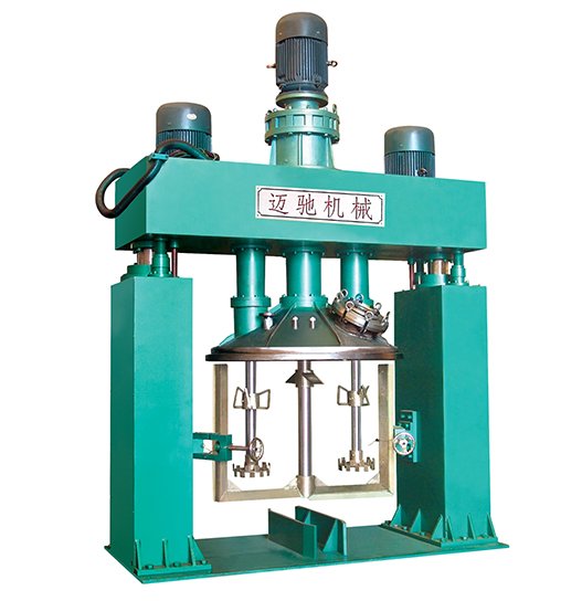 高速轴:蝴碟形搅拌器二个, 叶轮式分散盘各一个(两轴对称) 低速轴:框带柔性刮刀片搅拌器一个 |