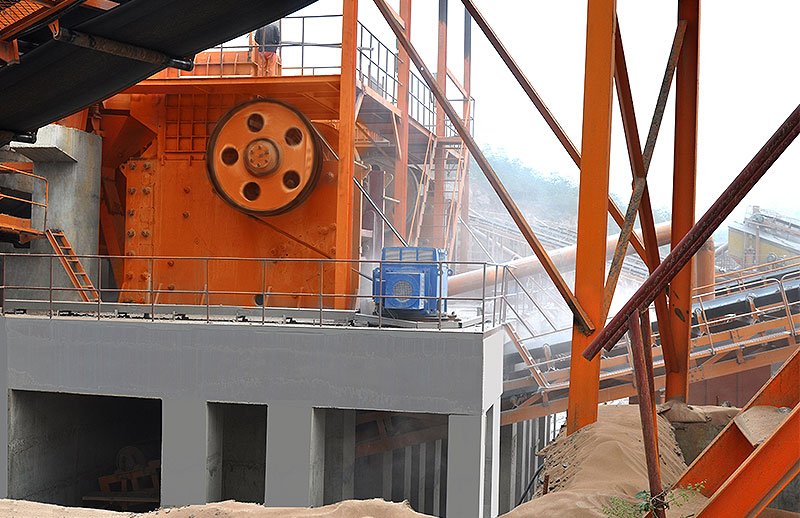 大块物料经过GZD1500×6000振动给料机被均匀的送进HJW145高能颚破中进行粗碎;粗碎后的物料经过两台GZD960×3800振动给料机进入两台HJ98高能颚破中进行中碎;中碎后的物料经过两台GZD960×3800振动给料机均匀的喂入两台HPT300多缸液压圆锥破进行细碎;细碎后的物料经过三台YZS2160振动筛分级后,10-25mm成为骨料产品,25mm以上的返回HPT300多缸液压圆锥破循环破碎,0-10mm的物料进入VSI9526冲击破进行整形,产出0-5mm的成品机制砂。