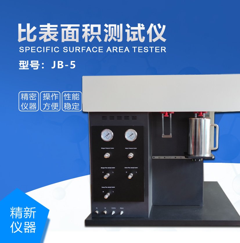 JB-5型比表面积测试仪,采用氮吸附动态法测定粉体比表面积,4个工作分析站,可以依次测试4种样品的比表面积,非常适合样品产量大、品种多的行业使用。分析范围:0.0005m2/g~无上限;测试精度高、重现性好。采用双气源动态气相色谱法,以氦气作为载气,氮气为被吸附气体作为测试气体,对不同样品的固体表面进行分析,能快速测试各行业粉体、颗粒等材料的比表面积。