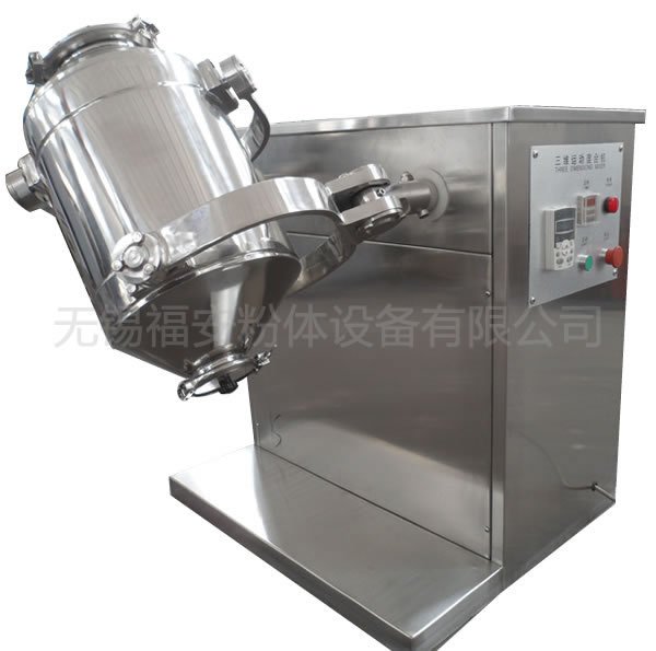 三维运动混合机是混合机的一种,该机用于制药、化工、食品、轻工、电子、机械、矿冶、国防工业以及科研单位的粉状、颗粒状物料的高均匀度混合。筒体各处为圆弧过渡,经过精密抛光处理。