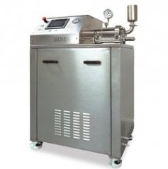 物料流经单向阀后,在高压腔泵里加压。通过微米级的喷嘴,以亚音速撞击在乳化腔上,同时通过强烈的空穴,剪切效应,得到足够小而均一的粒径分布。