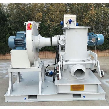 碳酸氢钠在设备中的粉碎区通过与研磨盘的相互撞击进行研磨,同时,工艺空气从研磨机底部进入研磨机,并上行将物料送至分级机,符合粒度要求的颗粒则通过分级轮进入微风输送部分,大颗粒则被分级轮挡回继续研磨。