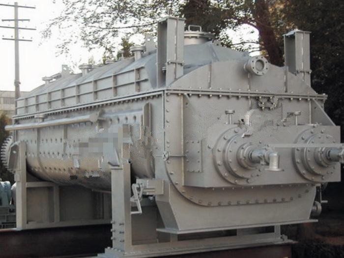 空心桨叶式干燥机是一种传导加热的低转速搅拌型干燥机。在干燥器简体上设置夹套,空心轴上设置空心桨叶,在其中通入热载体,湿物料在搅拌桨叶的搅动下简体及桨叶热表面进行充分热交换,以达到干燥的目的。