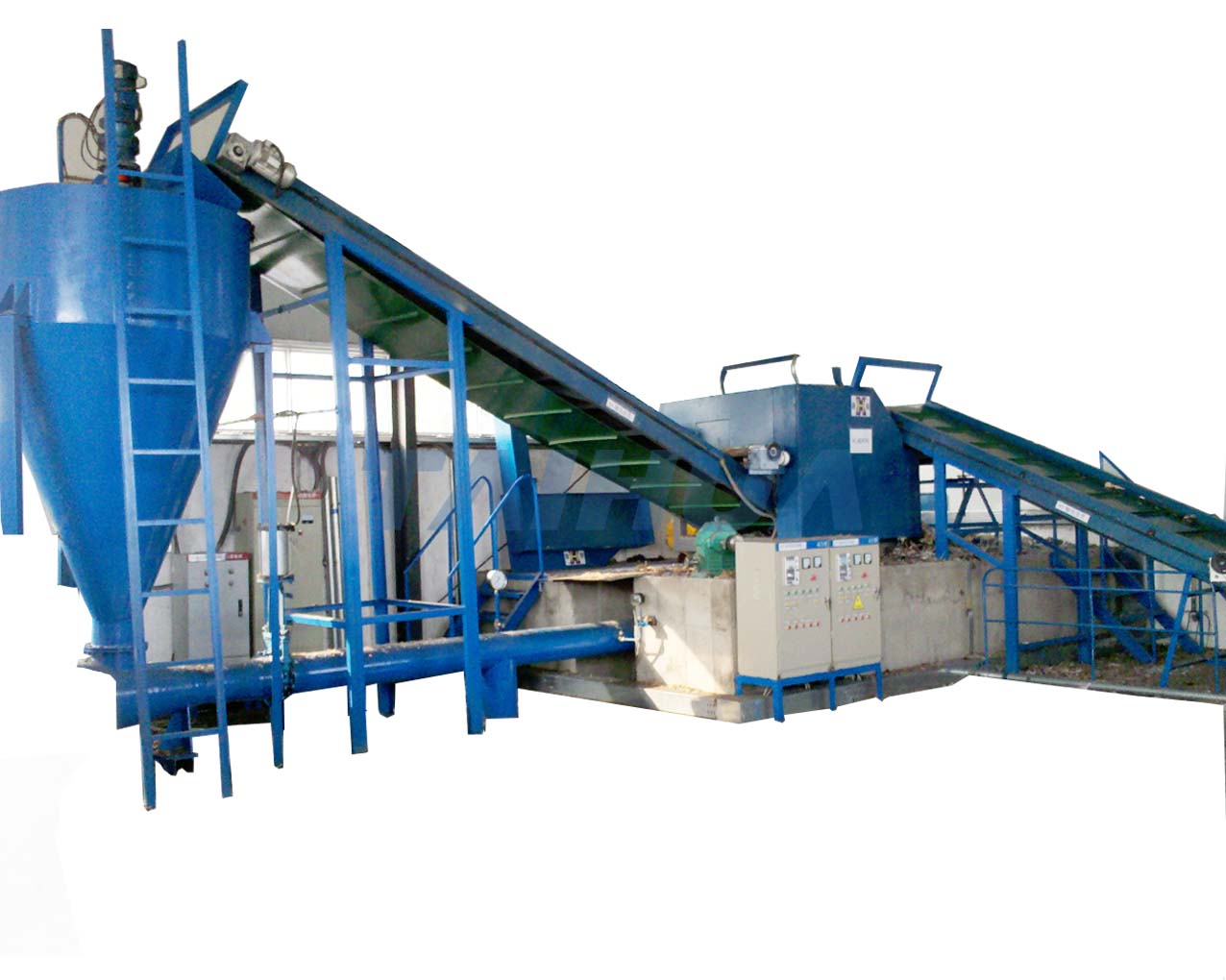 边角料气力输送工作原理:边角料由储存区转运至破碎系统;分别经过一级破碎和二级破碎机,将大小不一的原料破碎至60*60mm之下的碎块,再经过提升皮带送入输送系统料仓;破碎在离心机或罗茨风机提供的动力推动下,通过管道输送至锅炉一侧,由煤机下料管进入锅炉内燃烧。燃烧完全后的烟气排放经过一系列的环保处理,终达到环保排放要求。