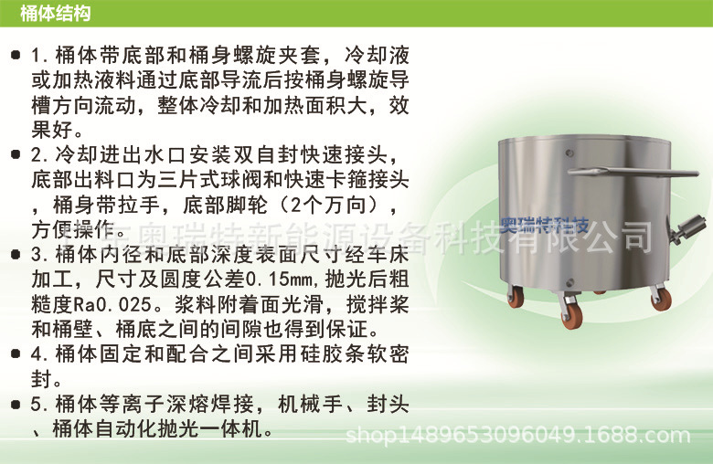 4.搅拌桨独立开模,材质:SUS316L,五轴加工中心精密加工,浆底倒梯形,防止浆料粘底;不锈钢桶体立车精密加工,确保搅拌桨与桶体材料与浆料不产生化学反应,桨与桨与桶体间隙*小化;