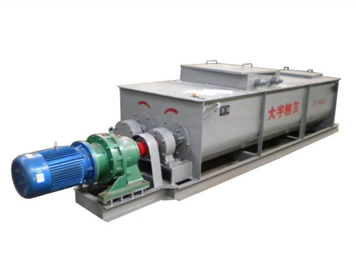 物料通过电动锁气给料机由进料口进入箱体,两根叶片呈左、右螺旋状分布的叶轴同步旋转,并将已加湿的物料连续地推出料口。