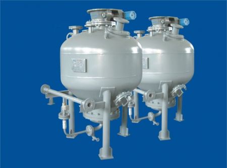 二、概述:SCB系列上引式粉体输送泵, 以压缩空气为动力气源, 是电厂气力除灰系统应用较早的气力输送设备。 该泵底部设有流化盘, 通过流化盘加压使泵内粉体流化, 达到设定压力值后,自动开启出料阀, 粉体在流化及压差作用下高速进入输送管道, 从而实现输送目的。该泵为沸腾式结构, 开启出料阀时初流速较高,不宜输送磨削性较强和硬度较高的粉粒物料。否则,导致出料阀、出料管磨损较大,维护成本高。