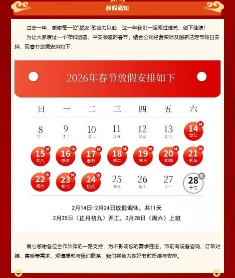 岁序更替,华章日新;马启新程,暖意相伴。值此2026丙午马年新春佳节来临之际 天津中环电炉股份有限公司 向全体员工、合作伙伴及各界友人致以最诚挚的新年祝福!新春大吉,万事胜意!天津