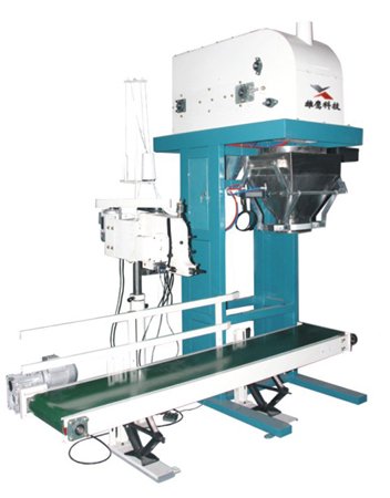 该系列机组主要针对物料流对性较差及对粉料和粒料两种物料交替包装共用一台包装秤设计而成。采用皮带式分级给料方式,将包装秤料仓内的物料通过传感器控制皮带的转速,分级给料到称量斗或包装袋内,当包装物按设定值充填到包装袋内后,给料皮带停止给料。其物料按目标值填充到包装袋后,夹袋器自动打开,料袋通过输送带送走,由人工辅助口。