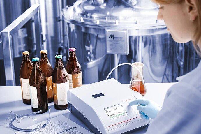 发酵过程中,糖类会被酵母代谢转化为酒精、二氧化碳及芳香类物质。借助酒精浸出物测量仪,可通过发酵曲线追踪该过程,实现精准调控,从而优化酵母回收效果、提升产品品质。采用Alex酒精测定仪测定酒精含量小型啤