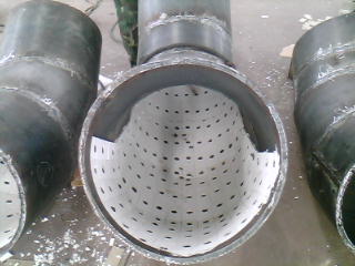 粘贴陶瓷耐磨弯头是以AL2O3为原料、以稀有金属氧化物为溶剂,经1730℃的高温烧结制成的特种刚玉陶瓷,再采用耐磨胶粘结组合成的耐磨陶瓷贴片,可根据不同的需求选择耐磨陶瓷贴片、满足用户特殊需求的技术条件。耐磨陶瓷贴片的耐磨性是锰钢280倍,是高铬铸铁的180.5倍。广泛应用于电厂煤粉输送、钢厂烧结除尘、水泥厂等企业的有关设备、管道。