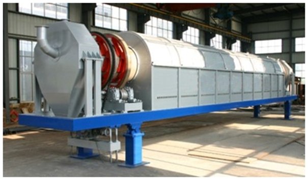 间接式回转窑可以使污泥在封闭、无氧、非燃烧、高温状态下进行化学反应过程,对污泥进行高温加热,在干馏和热分解的作用下,进行热解、脱氢、热缩合、气化、炭化。将污泥中的水分转换成冷凝水,将污泥中的有机挥发分热解转化成可燃气体,将污泥中的碳元素转化成生物炭。冷凝水、可燃气体和生物炭均可回收利用。