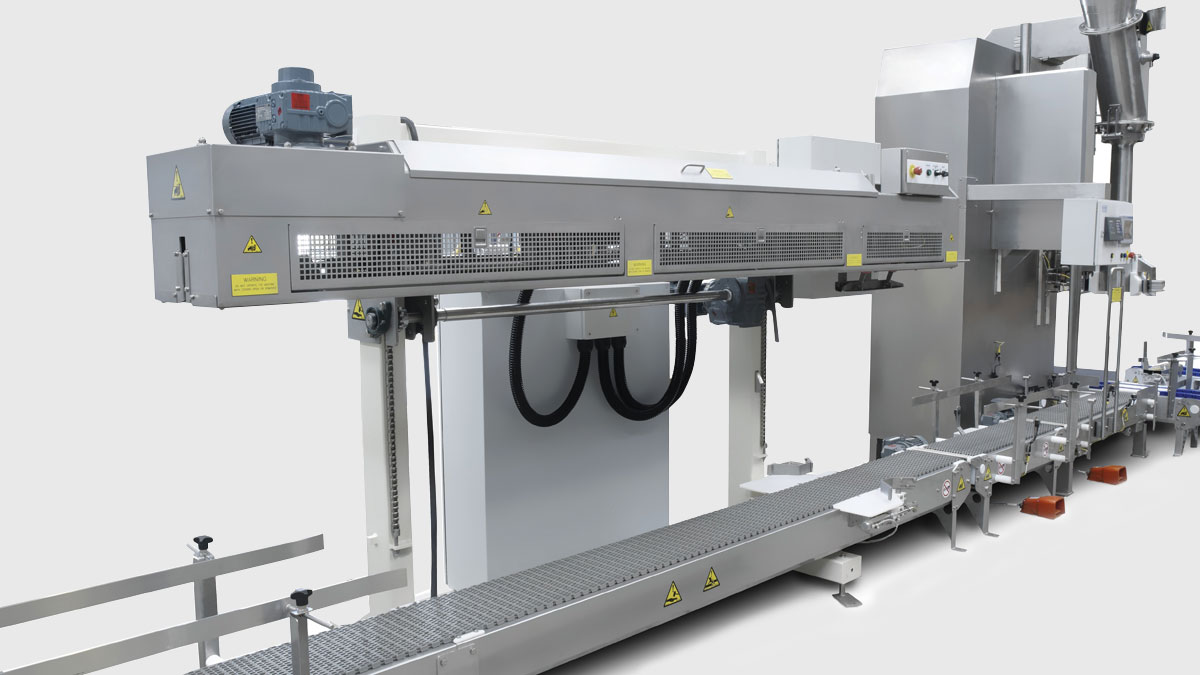 在下游,使用传统密封技术对包装袋封口,而对于包装盒和包装筒,则使用静态脉冲密封或只是人工“挤成鹅颈状”并系住来进行密封。