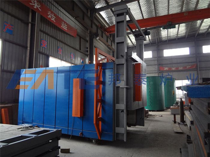 本炉由炉体移动、外型部分主要采用型钢和钢板等焊接而成,炉体行走方式与炉门启闭方式均由电动机和减速机配套中央控制柜来完成,炉门和台车均设有行程开关,当炉门和炉体达到设定距离时,行程开关将自动切断电源。