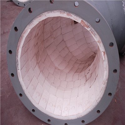 贴片耐磨陶瓷管道是耐高温强力粘胶将氧化铝陶瓷片粘贴在管道内壁,经加温固化后形成来古防磨层。制作工艺简单,成本较高。使用温度一般不能超过100度,不适合管道。