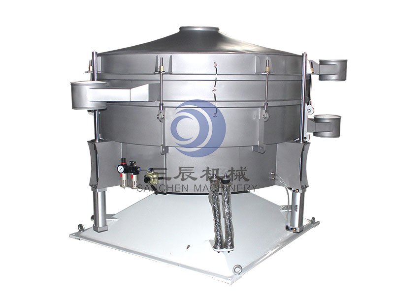 圆形摇摆筛的原理是瞬时运动为沿径向的位移和以此位移为轴的圆周运动的合成(螺旋运动)。即可调节偏心距的激振器产生了非线性三维运动,物料也产生同样的近似手动作业的运动,从而达到筛分之目的。