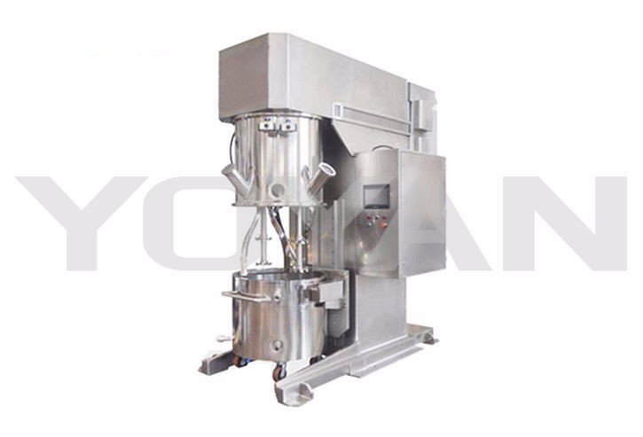 工业级行星搅拌机是永延设计制造的一种高性能、高速度、易清洗维护的新型搅拌设备。该设备的双组搅拌器自转的同时绕着轴心进行公转,搅拌器形式根据物料粘度和工艺特性选 配,常见的包括浆叶式、麻花式、爪式、框式等,具备良好的混合、反应、捏合、溶解的作用;高速分散器由多层具备极高线速度的锯齿状分散盘组成,它同样在高 速自转的同时绕着轴心进行公转,能够将粉料(助剂)快速的分散到浆料里,具备很强的分散作用。双行星搅拌机配有一组独立刮刀,对桶壁进行不断的刮拭,同时 搅拌浆叶可以增加刮片,对料桶底部进行刮拭,避免搅拌死角,确保产品的稳定性;其传动采用行星齿轮传动,有较大的输出扭矩,适用于高温、高固、高粘度等高 难度工况;该设备密闭式设计,可以配合真空系统,实现真空搅拌,搅拌桶可设计带夹套加热,配合模温机,实现恒温搅拌功能,是市场上针对高粘度物料的分散、 搅拌设备。