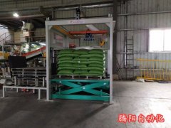 袋装码垛机器人设备从输送机上抓取料袋,按照预定的码放方式,将料袋逐个逐层码放在托盘上,将码好的满垛输出。