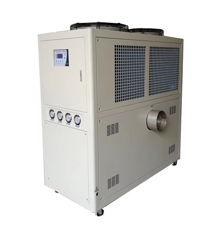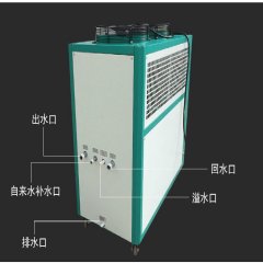风冷式特点: 是与散热方式来命名的,在机身内含有保温水箱和水泵,无需再另加冷却水塔来散热.安装和移动非常方便.但是它对工作环境要求车间的通风效果要好,否则会直接影响到制冷效果.