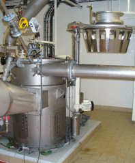 活化料斗为圆锥形,通过对料斗或筒仓出料进行振动来实现助流。活化料斗的组件有:在金属板材加工车床上加工的无缝锥体,其材料为碳钢或不锈钢;一个密封件;组合在料斗上的上、下法兰;用于连接活化料斗和筒仓的悬挂组件以及一至两个振动机。
