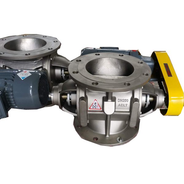 侧出料,适用于粉体,直接连接气力输送管线上,高压气体直接从阀体底部吹过,可防止粉体粘附于叶轮上,能提高输送效率。法兰连接,一般采用不锈钢与碳钢材质.
